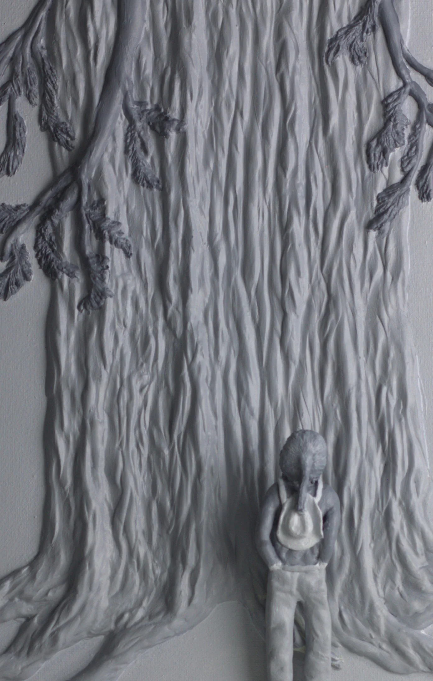 Big Tree is a bas relief made with Apoxy sculpting clay and on canvas, painted with acrylic.