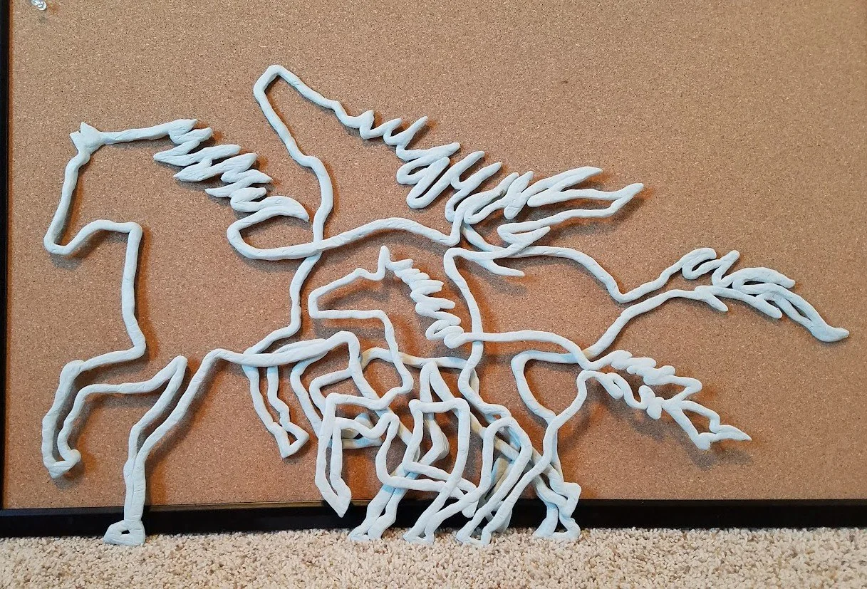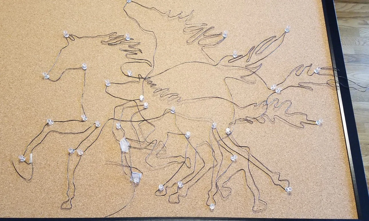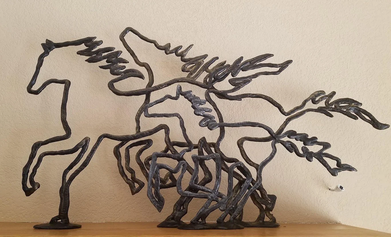 I “drew” the horses with wire, then coated them with Apoxy sculpting clay. Over black acrylic paint I added bronze, silver and gold Art Alchemy beeswax paste.